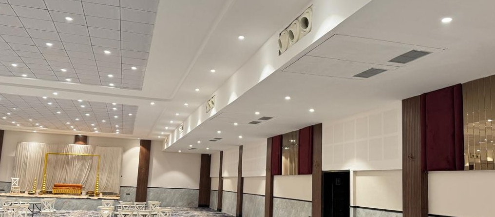Jet Nozzle with Planum and Split Unit, Suitable for Large Halls, Gyms, Showrooms and Banquets, it avoids the Need of separate Grill and its Expenses in Ducting work. Just Plug and Play Units, saves time and Money