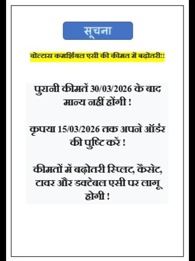 कीमतों में बढ़ोतरी स्प्लिट, कैसेट, टावर और डक्टेबल एसी पर लागू होगी !